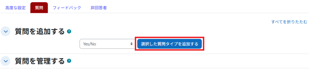 | Operating procedure | From the registered questionnaire, click “Add questions” to add questions. | |