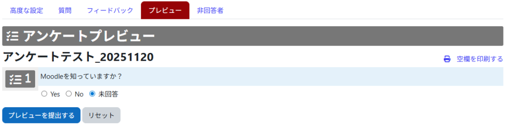 - Click on [Preview] to check the created questionnaire.