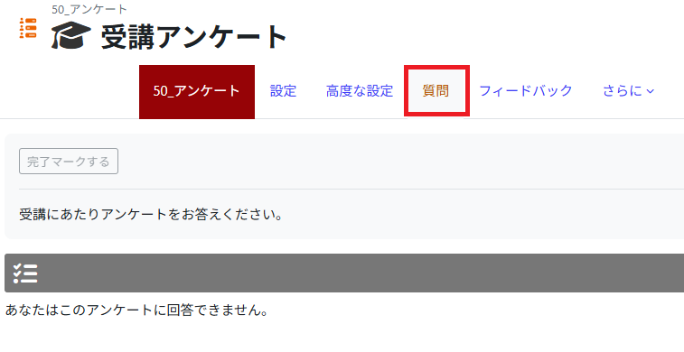 Click [Save and return to course]. Now the questionnaire is added to the course.Click the questionnaire to open.