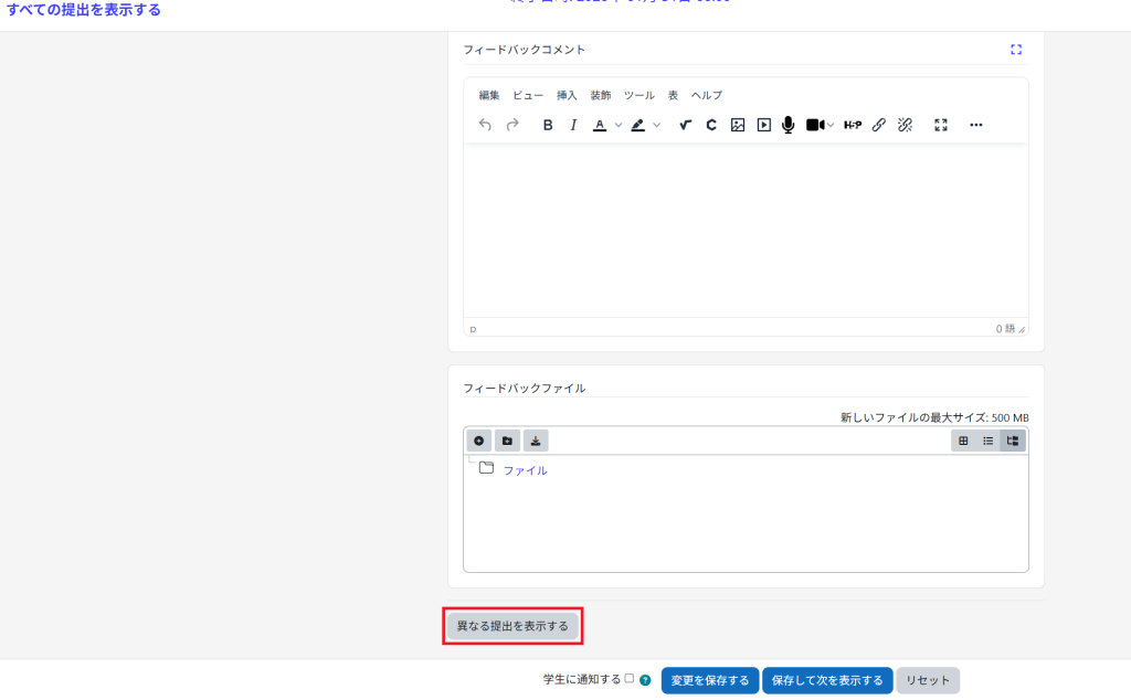 - You can change to other students with ▶. Also, if you click [View all submissions], you will go back to the list of the participants for the assignment.