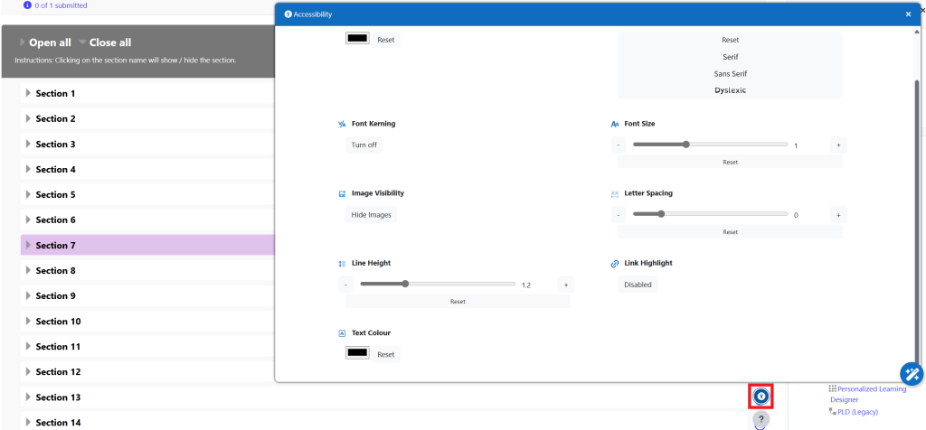 Even if an instructor changes settings like font size using this feature, it will not affect how the content is displayed for enrolled students.