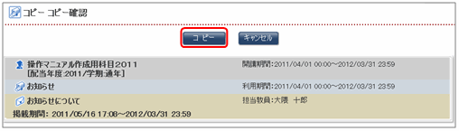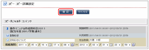 ※コピー後の各コンテンツの利用期間は確認画面で個別に更新することも可能です。 - 【コピー先の利用期間(開始日時~終了日時)を使用する】