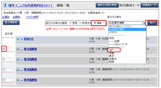 作成済みの講義フォルダを、同じ科目内または他の科目にコピーすることができます。