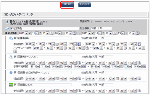 ※コピー後の各コンテンツの利用期間は確認画面で個別に更新することも可能です。 - 【コピー先フォルダの利用開始年月日を使用する】