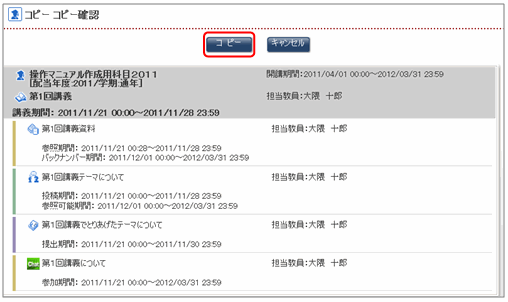 - コピーする講義フォルダにコンテンツが作成されている場合、そのコンテンツもコピーされます。