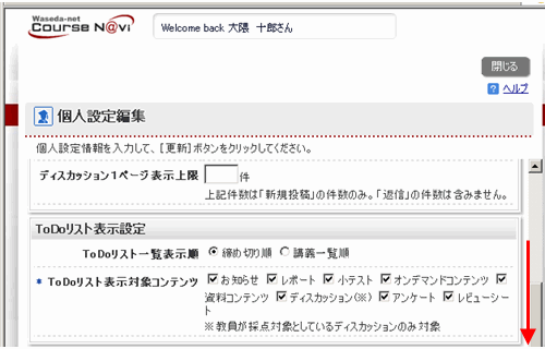 そのためにはCourse N@viの個人設定でメール転送設定を行う必要があります。