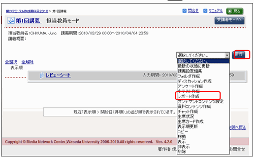 操作のリストボックスから[レポート作成]を選択し、をクリックします。