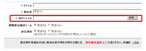 | 添付ファイル | レポート課題説明に参考となるファイルを添付する場合に指定 | をクリックし、添付するファイルを指定します。複数のファイルを添付したいときはをクリックしてさらにファイルを指定します。 |