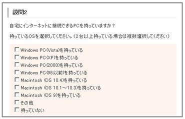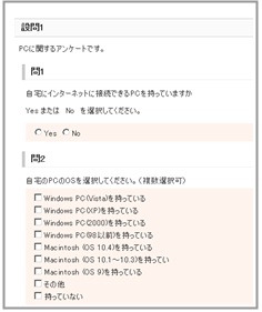 | ラジオボタン形式 | 選択肢をチェックする形式で表示する。 |