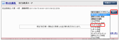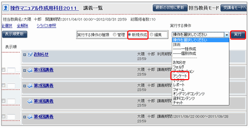 操作のリストボックスから[アンケート作成]を選択し、をクリックします。