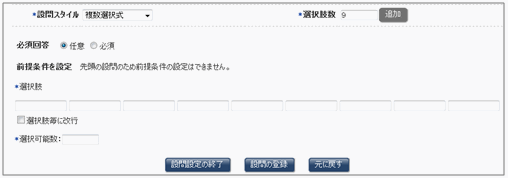- 選択肢の入力、選択肢の表示形式の指定、選択可能数ができるようになります。