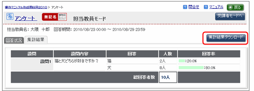 また、集計結果画面のをクリックすると、集計結果をCSV形式でダウンロードできます。